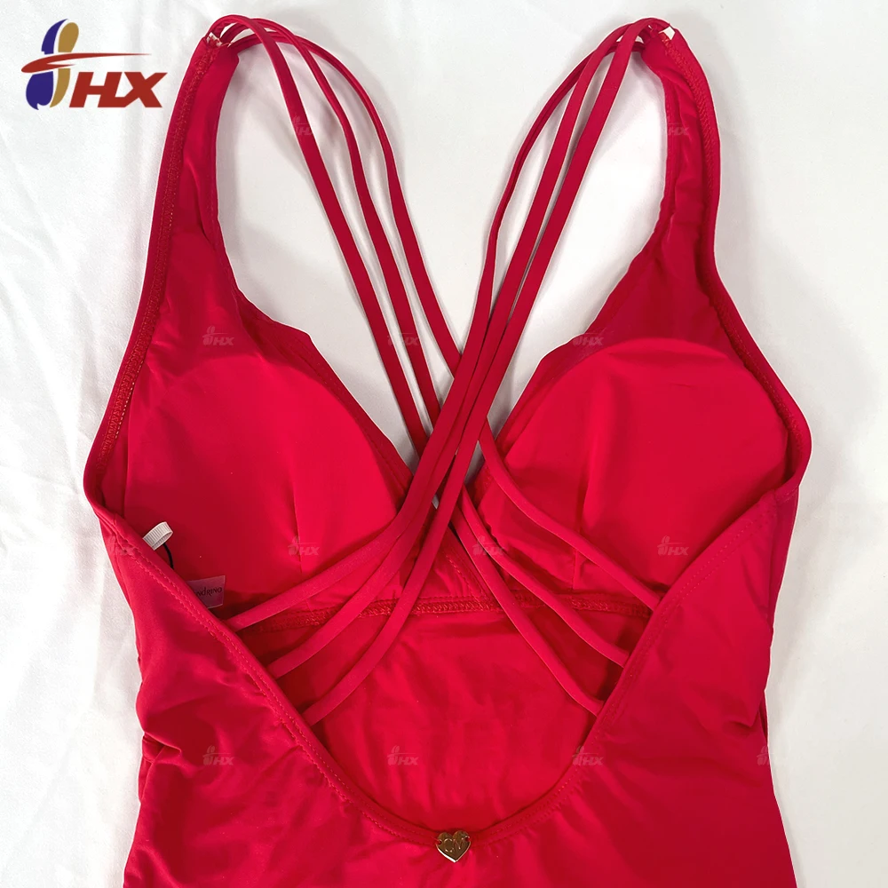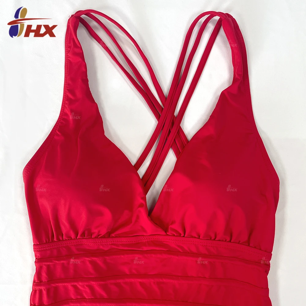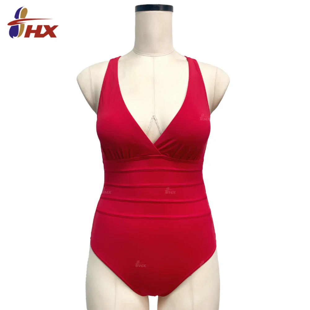 2023 Custom Women's Sexy Deep V-Neck Pleated One-Piece Bikini Beachwear Swimsuit